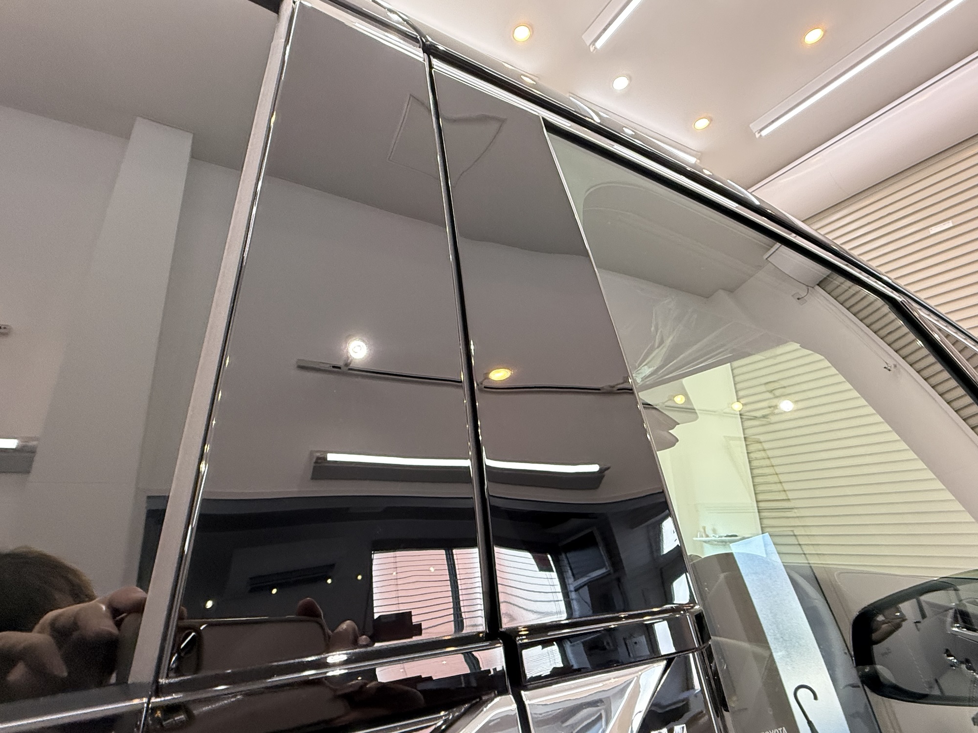 ピアノブラック センターピラーガーニッシュにはプロテクションフィルムを貼らせていただきました!傷が目立ち箇所ですからね。