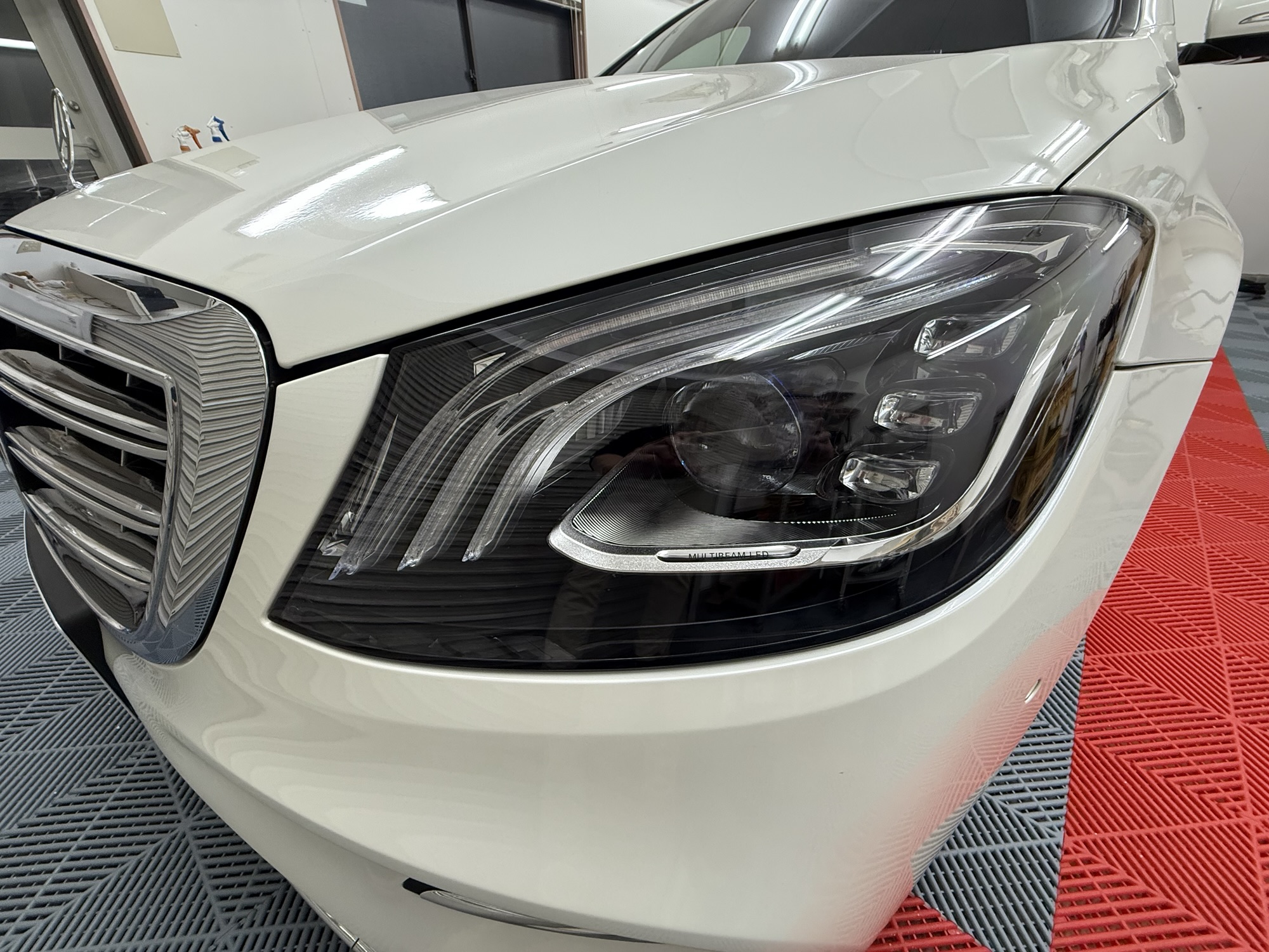 今回は、ベンツS ヘッドライトリペアのご入庫。