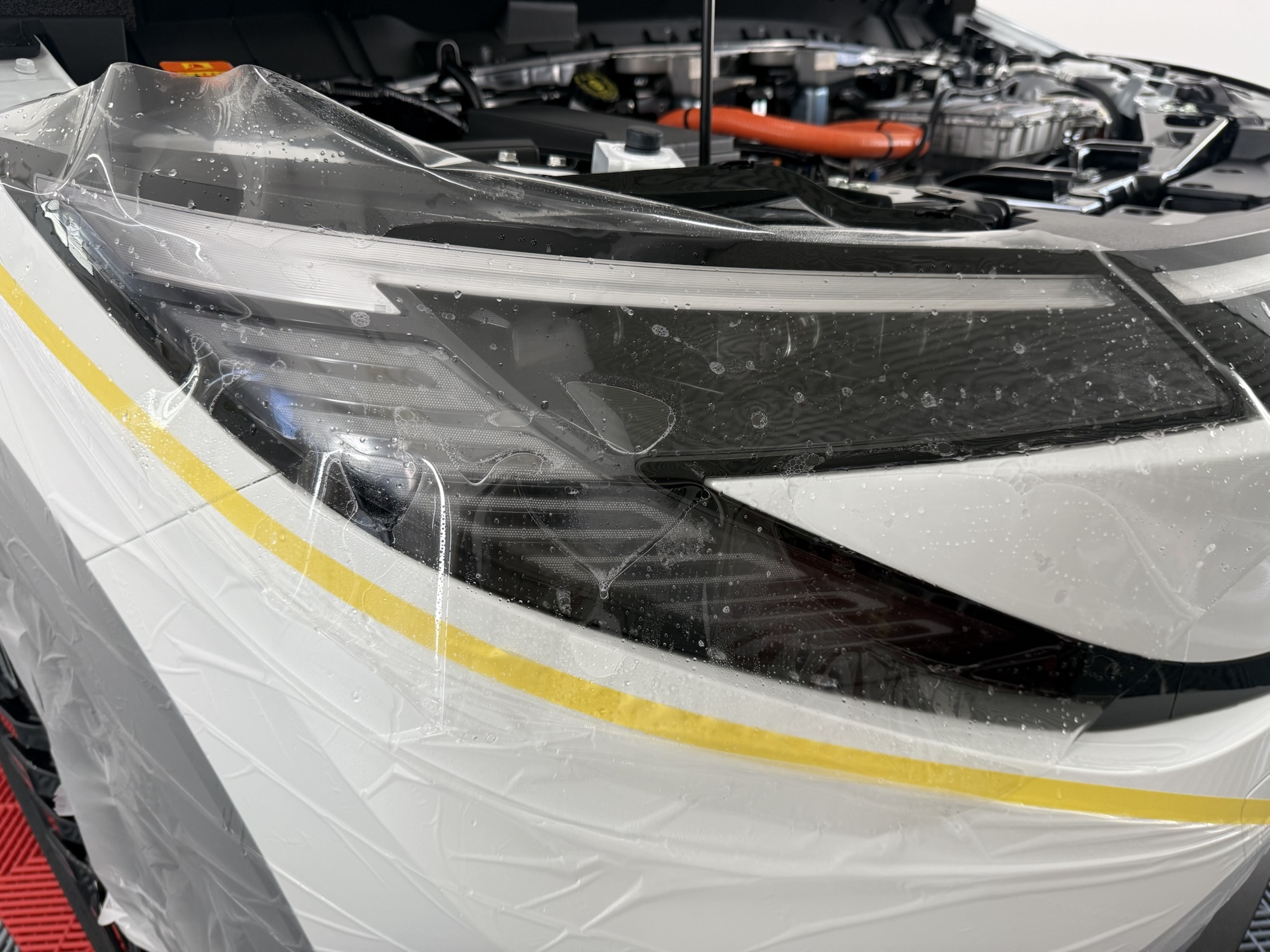 ヘッドライトプロテクションフィルムを貼ります。